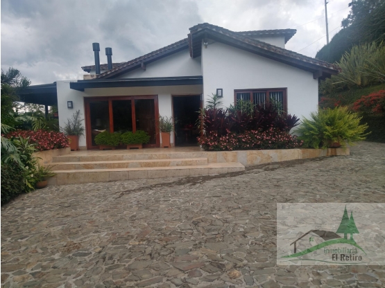 Casa Campestre con amplias zonas verdes rodeada de abundante jardín, cuenta con un área construida de 314 m2, 5 alcobas, 2 Vestier, 3 closets, 5 baños, sala con 3 ambientes, comedor, cocina, closet de linos, estudio, deck, 2 chimeneas, terraza, agua propia, energía, pozo séptico y gas por cilindros.